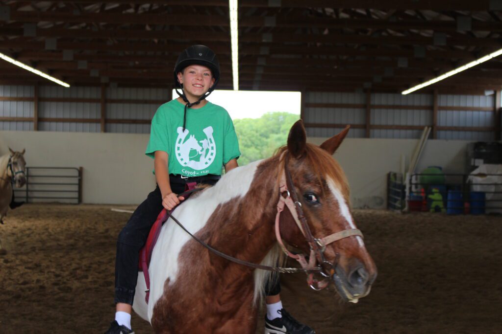 “When a child takes care of a horse, they form a bond with that animal,” Janelle said. “If the animal gets scared, injured, or bothered by something, the child is concerned about it and shows empathy towards the animal. I have also seen self-confidence and self-esteem increase when a child overcomes a fear or accomplishes a task with their horse—whether that be directing the horse while riding, learning how to tack up or pick hooves, or trotting for the first time. I have also seen a couple of the older kids help the younger kids and that has been encouraging to watch.”