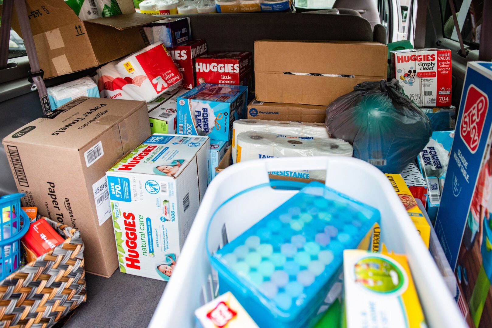 On Friday morning, we filled the van with diapers, laundry detergent, groceries, a television, school supplies, toys, a water table, and more.