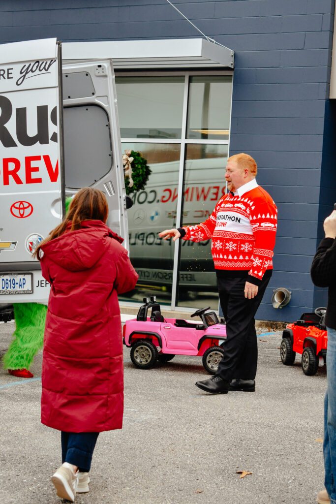 Last week, we had a special visit from Rusty Drewing, The Grinch, and even Santa! They helped the Rusty Drewing team deliver 20 mini Toyota Tacomas to our Columbia Family Center. These cars are fully equipped with Bluetooth and AM/FM radio, remote control steering, headlights, and more!
